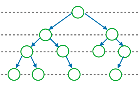 Per ogni , il numero di nodi al livello è uguale al numero di foglie di un albero binario completo perfettamente bilanciato di altezza . Il numero totale di nodi è quindi