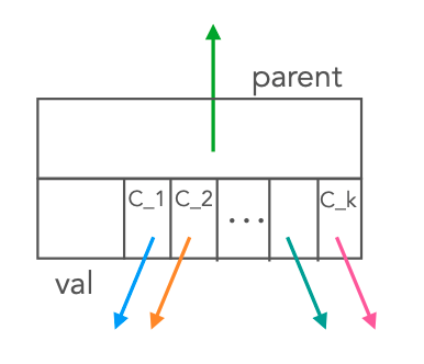 I nodi in questo caso sono memorizzati in un array di coppie, dove ogni coppia contiene il valore memorizzato nel nodo e l’indice dell’array che contiene il nodo padre (val, p).