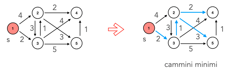 L’albero dei cammini minimi per un nodo è un albero di copertura per i nodi raggiungibili da con radice nel nodo avente un cammino minimo per ogni nodo raggiungibile da .