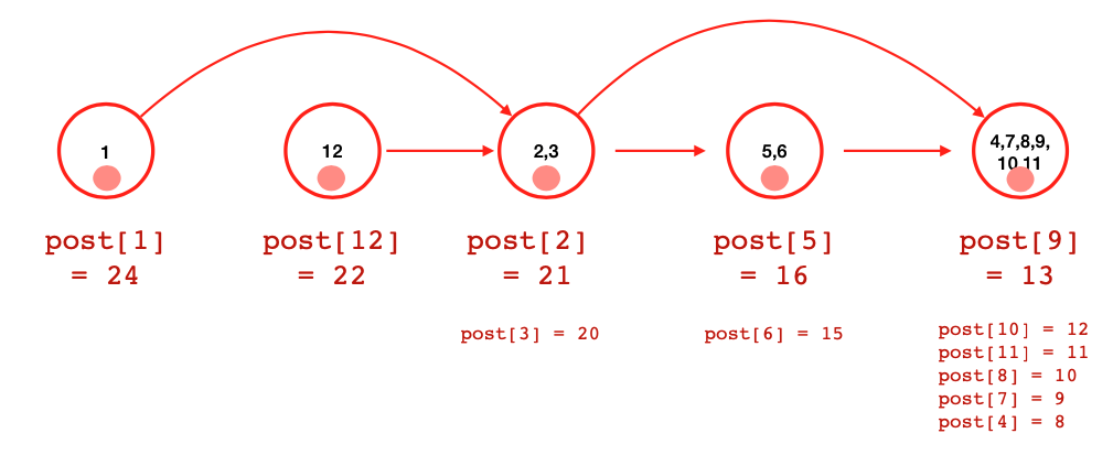 post - Determinare le componenti fortemente connesse dalla foresta di copertura (albero === componente)