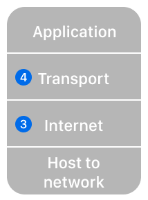 I due livelli data link e physical sono stati implementati in un unico livello chiamato host to network. Il livello network è stato chiamato Internet e il livello trasporto è rimasto lo stesso. I livelli presentation e session sono collassasti nel livello trasporto.