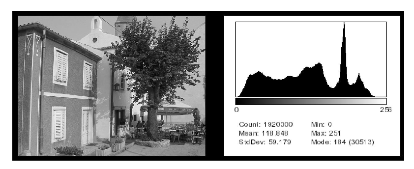 In questo caso l’immagine ha 256 livelli di grigio distinti (8bit) e l’istogramma mostra la frequenza con cui si verifica ogni livello di grigio