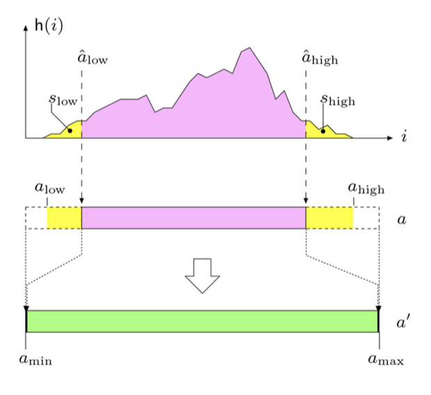 Migliore del precedente per il fatto che riesce a mappare anche solo una parte del range dei valori. Questo serve per evitare di utilizzare i capi dell’istogramma, che solitamente è rumore, ed è basato su percentuali predefinite ()