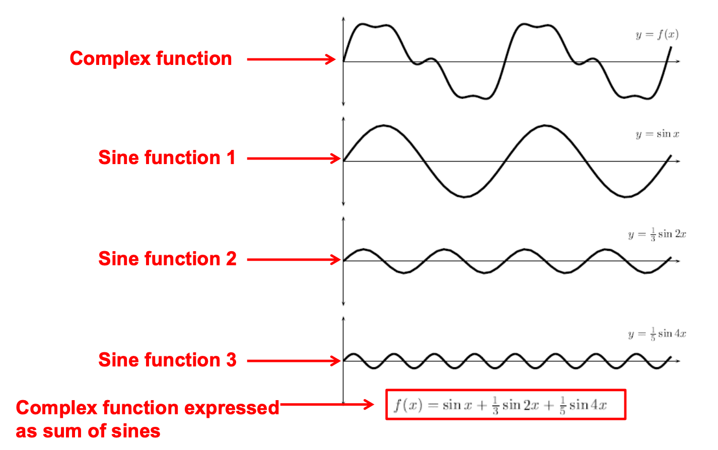 Dal momento che è matematicamente più semplice analizzare gli effetti di trasformazioni, rumore ecc su funzioni seno semplici, per poi unirli ed avere l’effetto della funzione complessa iniziale.