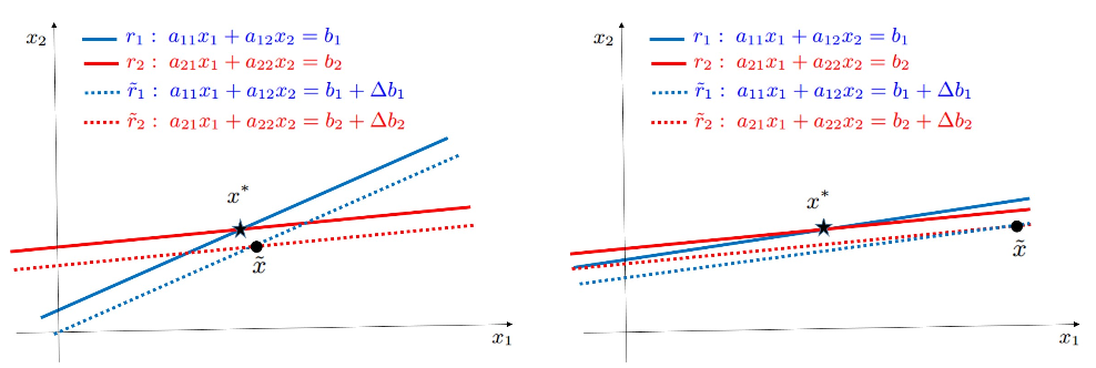 In un sistema ben condizionato, con , si ha che il punto trovato è il punto di intersezione.